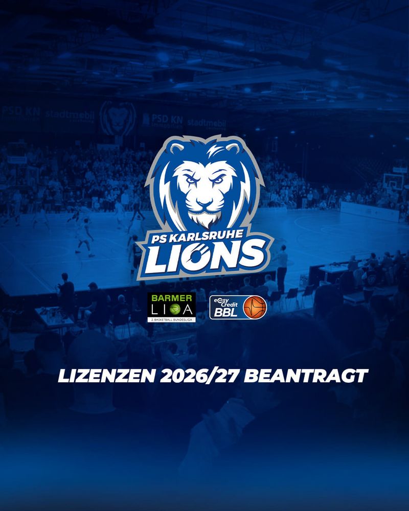 Die PS Karlsruhe LIONS haben die Lizenzanträge für die Saison 2026/27 form- und fristgerecht eingereicht. Beantragt wurden für die kommende Spielzeit die Lizenzen für die BARMER 2. Basketball Bundesliga ProA sowie die easyCredit BBL.