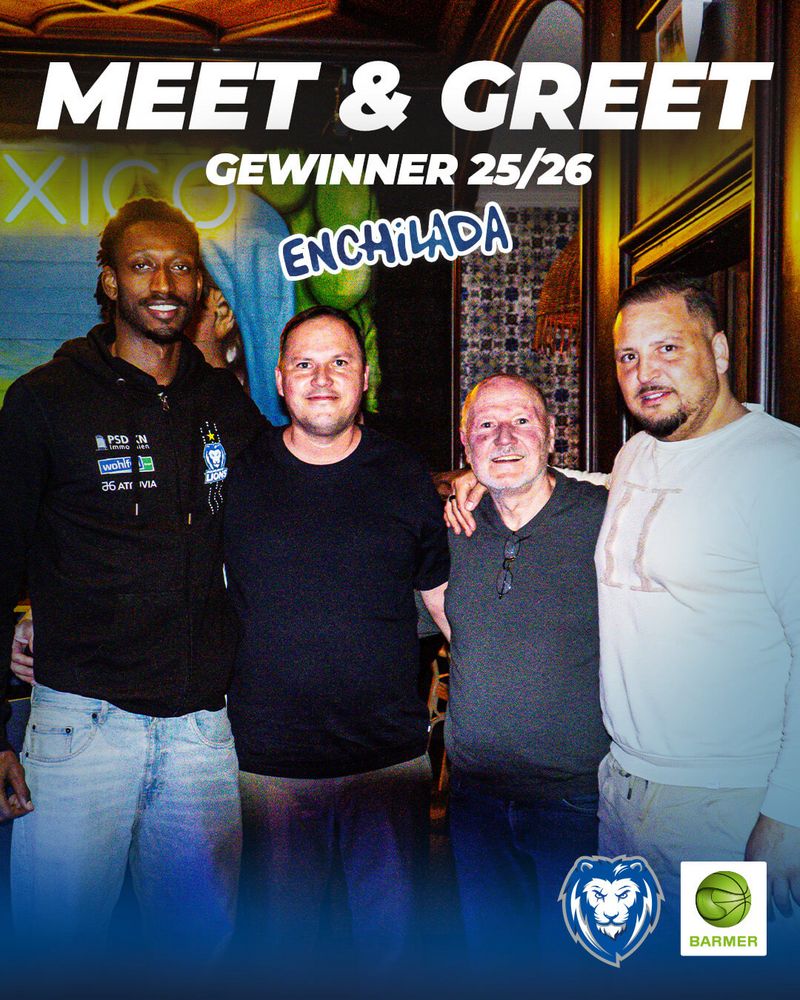 Beim diesjährigen Meet & Greet traf einer unserer Dauerkarteninhaber auf Wesley Oba und Teammanager Karim El Wakil. In entspannter Atmosphäre gab es spannende Gespräche, Einblicke hinter die Kulissen und Basketball mal aus einer ganz anderen Perspektive. Ein großes Dankeschön an das Enchilada Karlsruhe für die Gastfreundschaft und den perfekten Rahmen für diesen Abend.