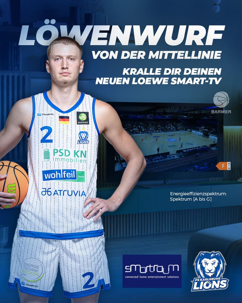 Der/die Auserwählte des Gewinnspiels hat genau einen Versuch. Mit einem Treffer von der Mittellinie gewinnt ihr den LOEWE-Fernseher. Der Wurf findet am 14.03.26 beim Spiel gegen Bayreuth statt. Um eine Chance zu erhalten in der Europahalle zu werfen, müsst ihr am Insta-Gewinnspiel teilnehmen.